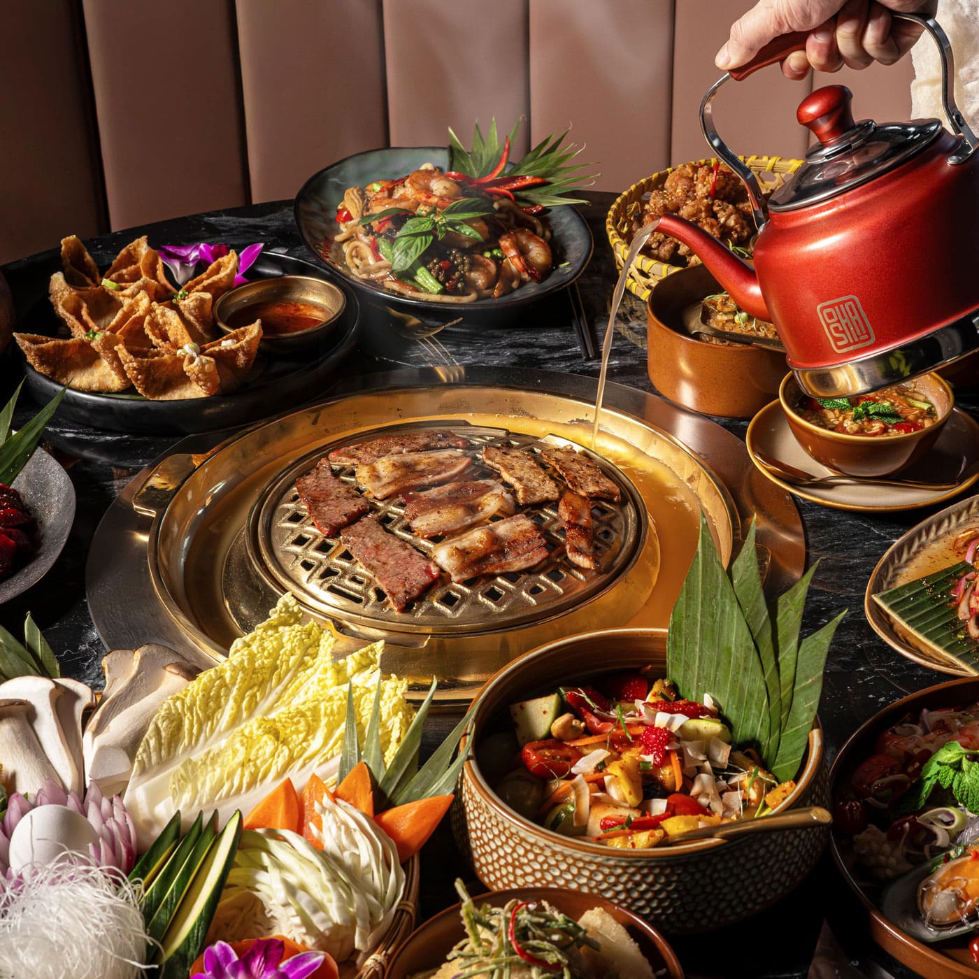 Mookata brings together Thai barbecue and hot pot in one easy, flavourful experience. Grill marinated meats on a hot dome while simmering fresh veggies and broth around the edges. It’s a fun, hands-on meal that lets you enjoy perfectly cooked food with rich, smoky flavors at your own pace.
